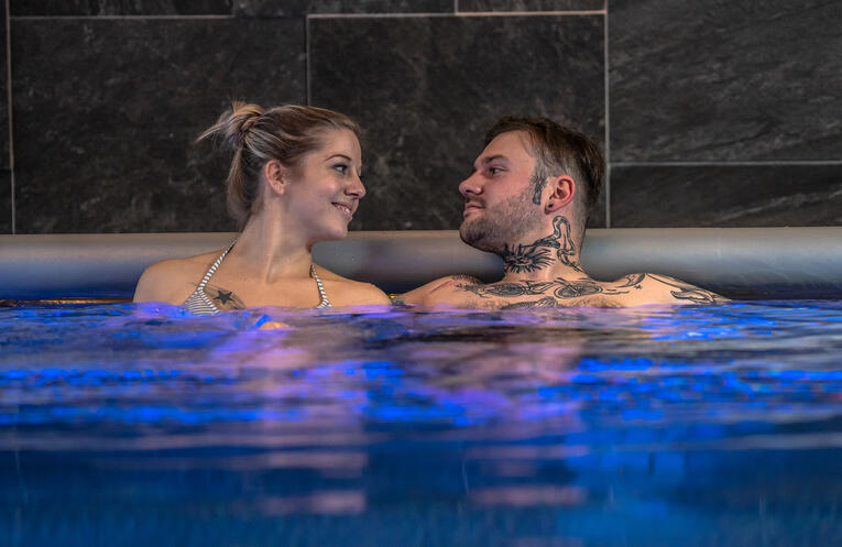 Ziehen Sie ein paar Bahnen im angenehm warmen Wasser. Machen Sie es sich auf einer Relaxliege bequem und schließen Sie die Augen. Oder nehmen Sie am lodernden Kaminfeuer Platz und genießen Sie die Wärme. Nach dem Bad gönnen Sie sich einen Saunagang in der Außenblocksauna oder eine Massage bei unserem Experten Andreas. Im Sommer können Sie den Blick auf das Kitzsteinhorn von unserer ruhigen Sonnenterrasse genießen und dabei einen fruchtigen Cocktail schlürfen. Und vom Hallenbad aus schweift der Blick durch die Glasfronten in die sonnige Bergwelt.