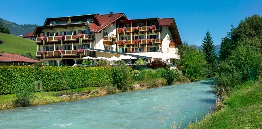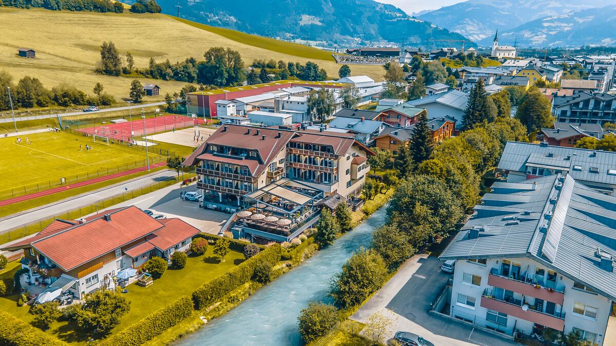 Drive straight ahead along the right side of the river through the centre of Kaprun. Shortly before you arrive at the bridge, turn right onto Schulstrasse street. Do not cross any bridges and always stay on the right side of the river and you'll reach the hotel without any detours!